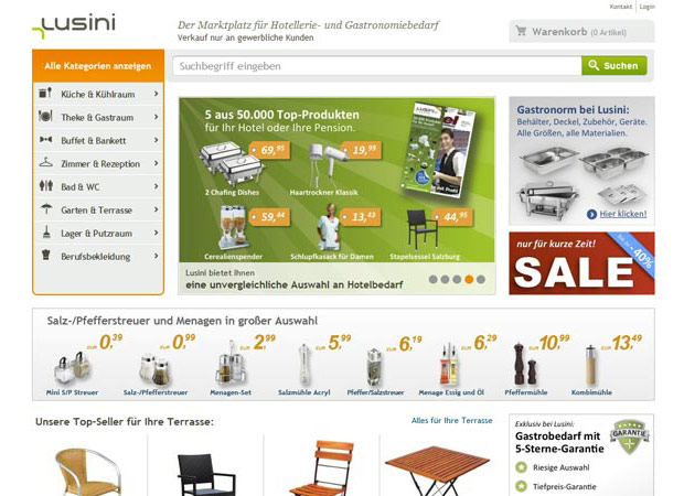 Lusini ist Teil von Europa’s führendem Versandhändler für Gastrobedarf mit rund 700 Mitarbeitern in 10 Ländern. Wir haben für Lusini die Shopoberfläche als HTML Vorlage umgesetzt.